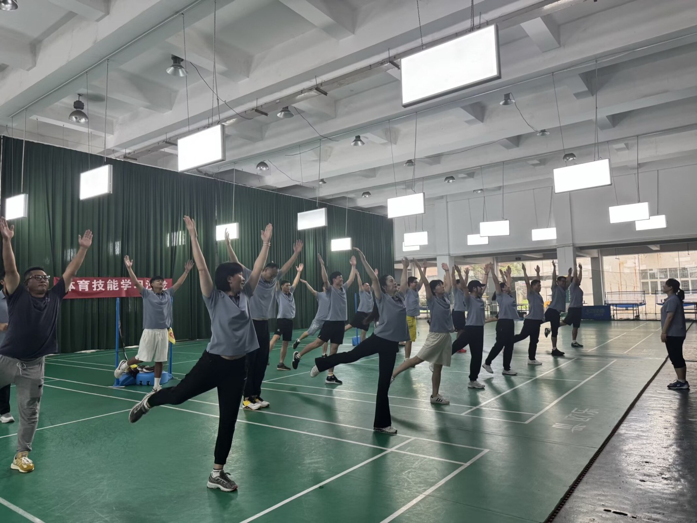 体育教学部全体任课教师对今年国家体育总局新发布的第九套广播体操进行了集体备课。在谢纪军老师的牵头下,大家从细节着手,从分解到完整动作,相互交换意见、相互指导和指正,务求把动作做到最标准。